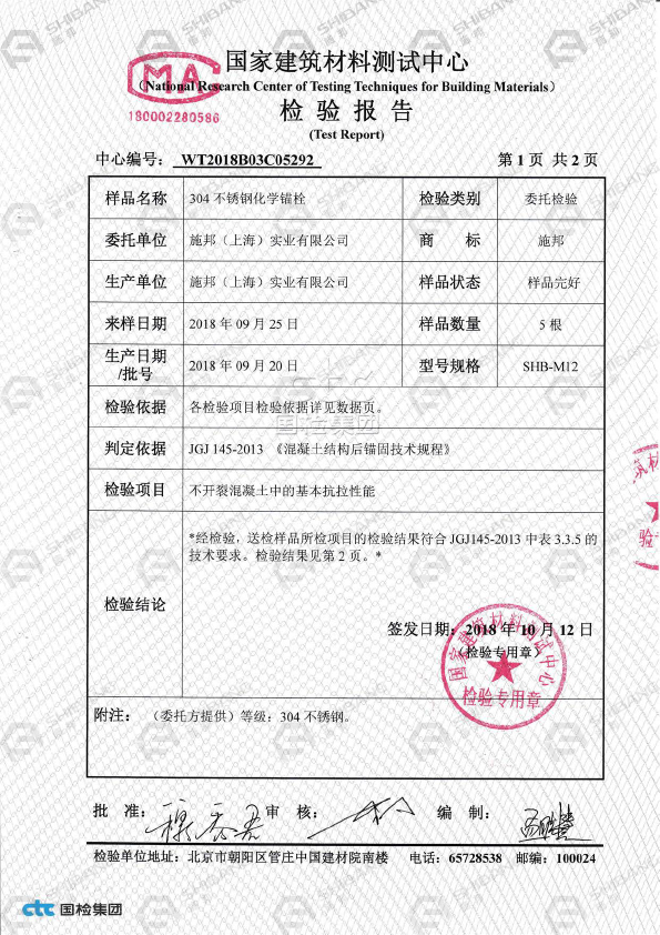 表格未列出的產品,請參照《JGJ145-2013混凝(níng)土結(jié)構(gòu)後錨固技(jì)術規程》按照承載(zǎi)力極限狀態計算方式得出相應數據,具體方案請谘詢施邦(bāng) (上海) 實業有限公司技術部(bù)