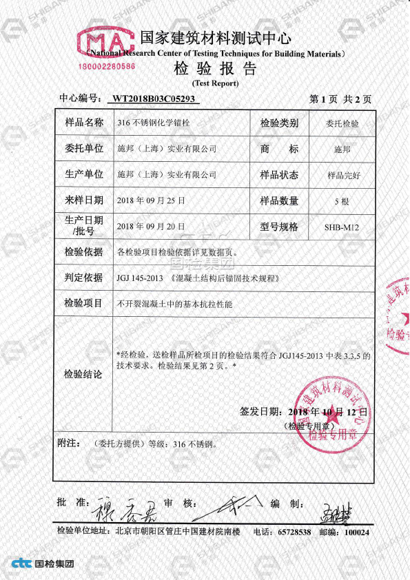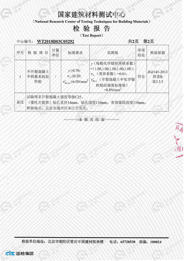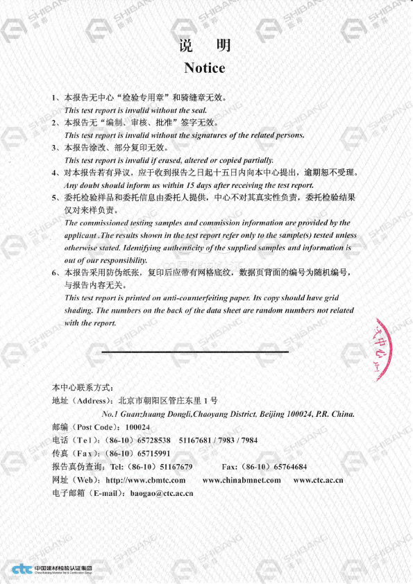 通過(guò)《我國(guó)建築材(cái)料測試中心》檢測