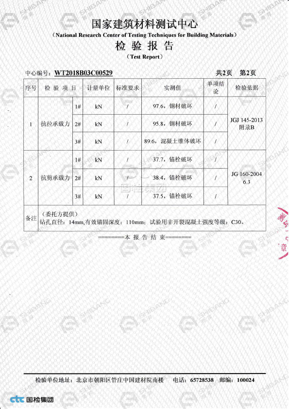 • SHB 特殊倒錐定型錨栓抗拉、抗剪檢測