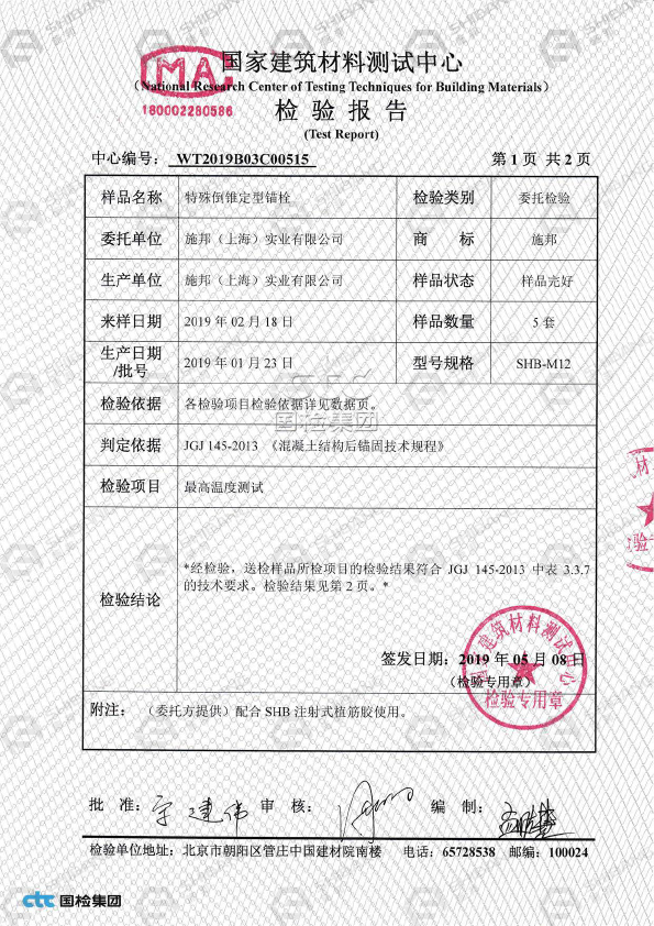 • SHB 特殊倒錐定型錨栓溫度(dù)檢測